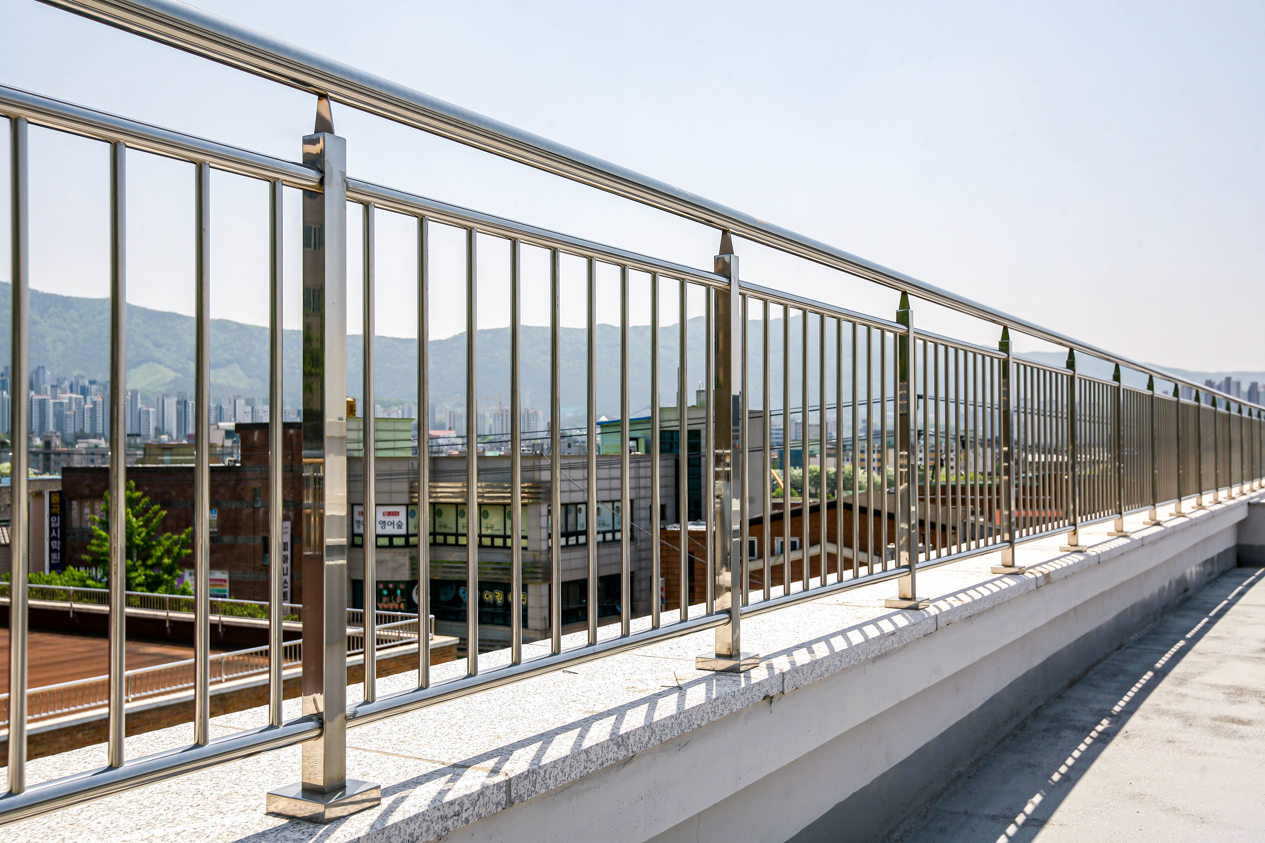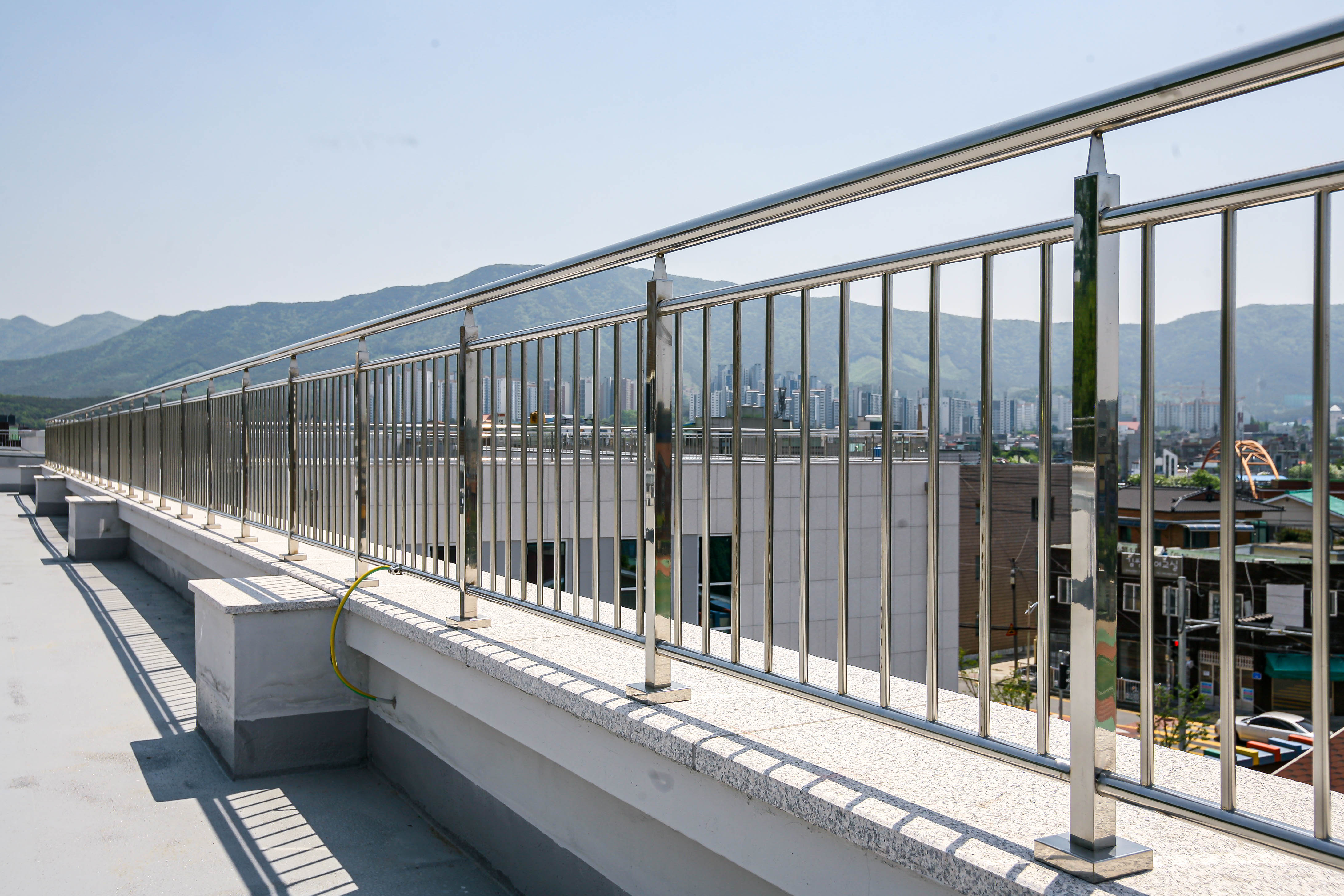 난간몰은 옥상 외부 전체 라인에 부식에 강한 스테인리스 안전 난간을 설치했습니다.