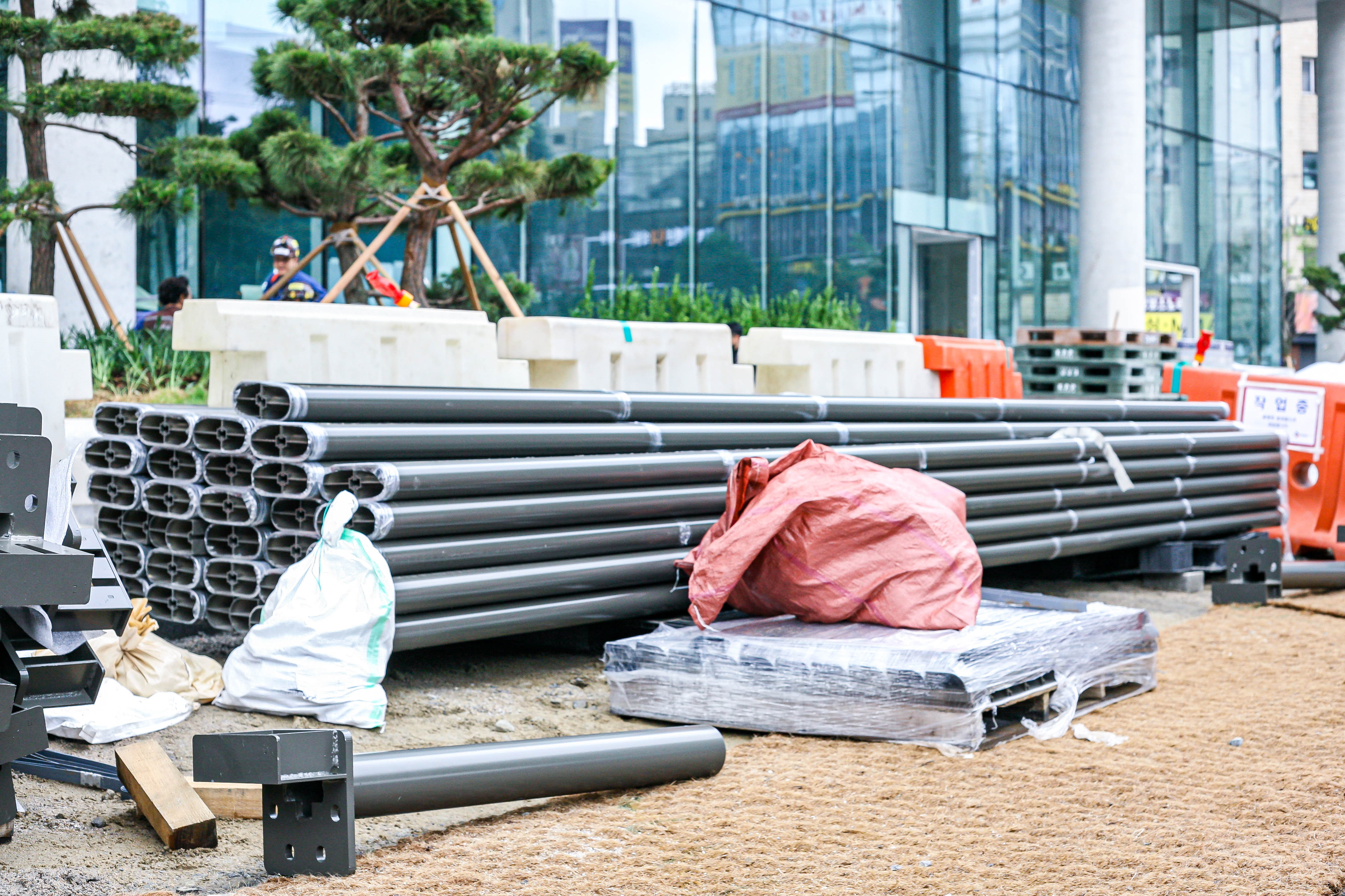 본격적인 설치에 앞서 주요 자재를 안전하게 배치합니다.