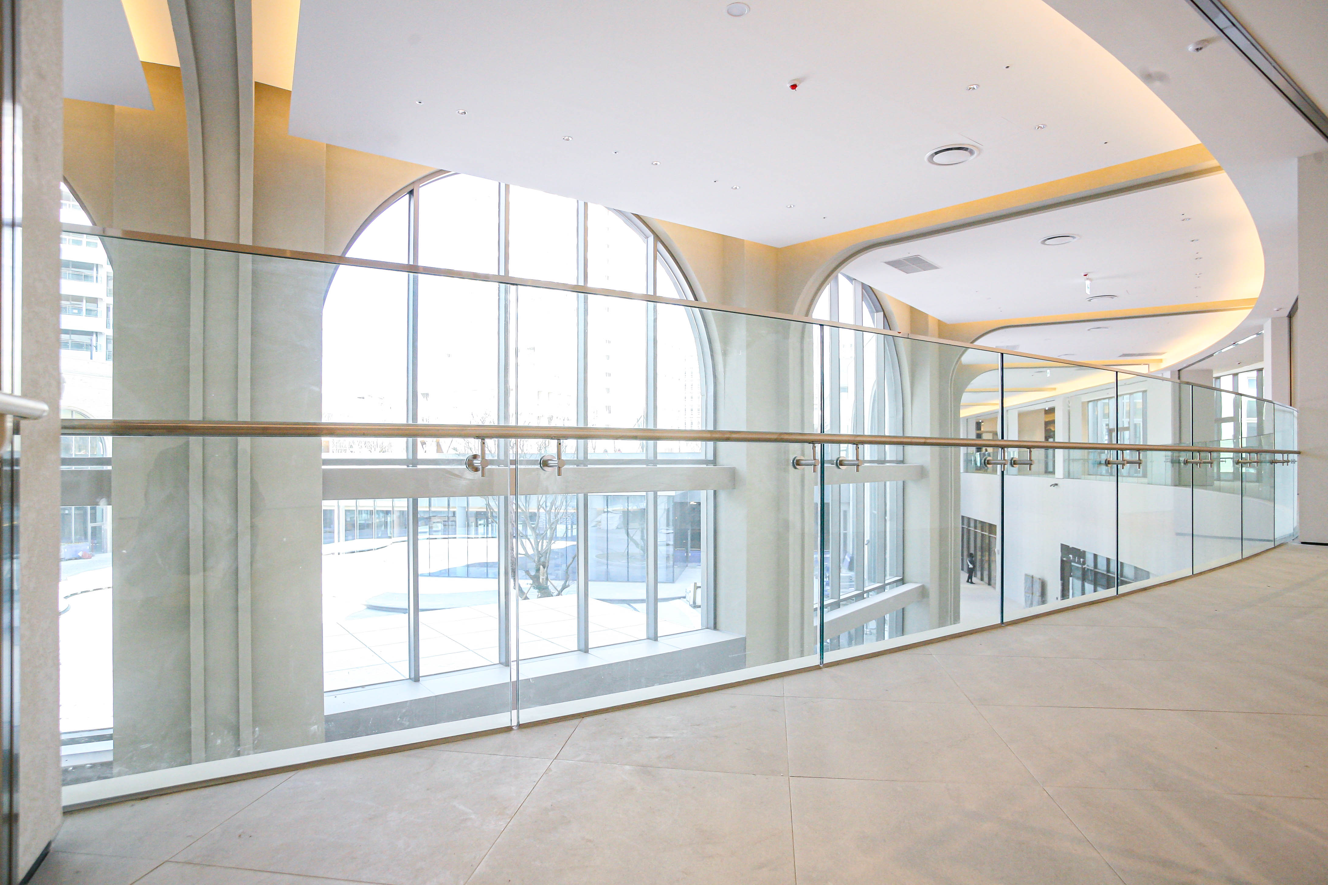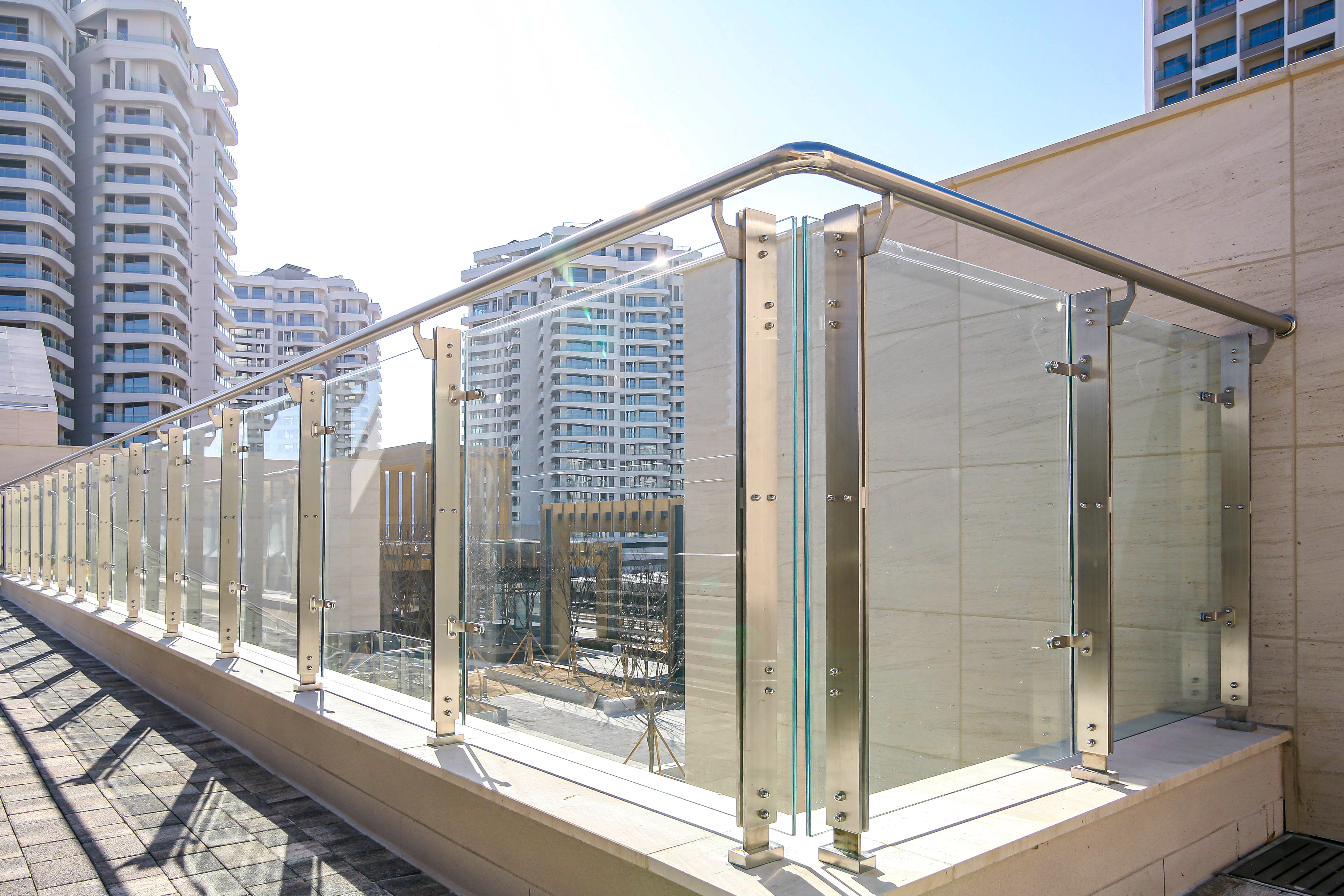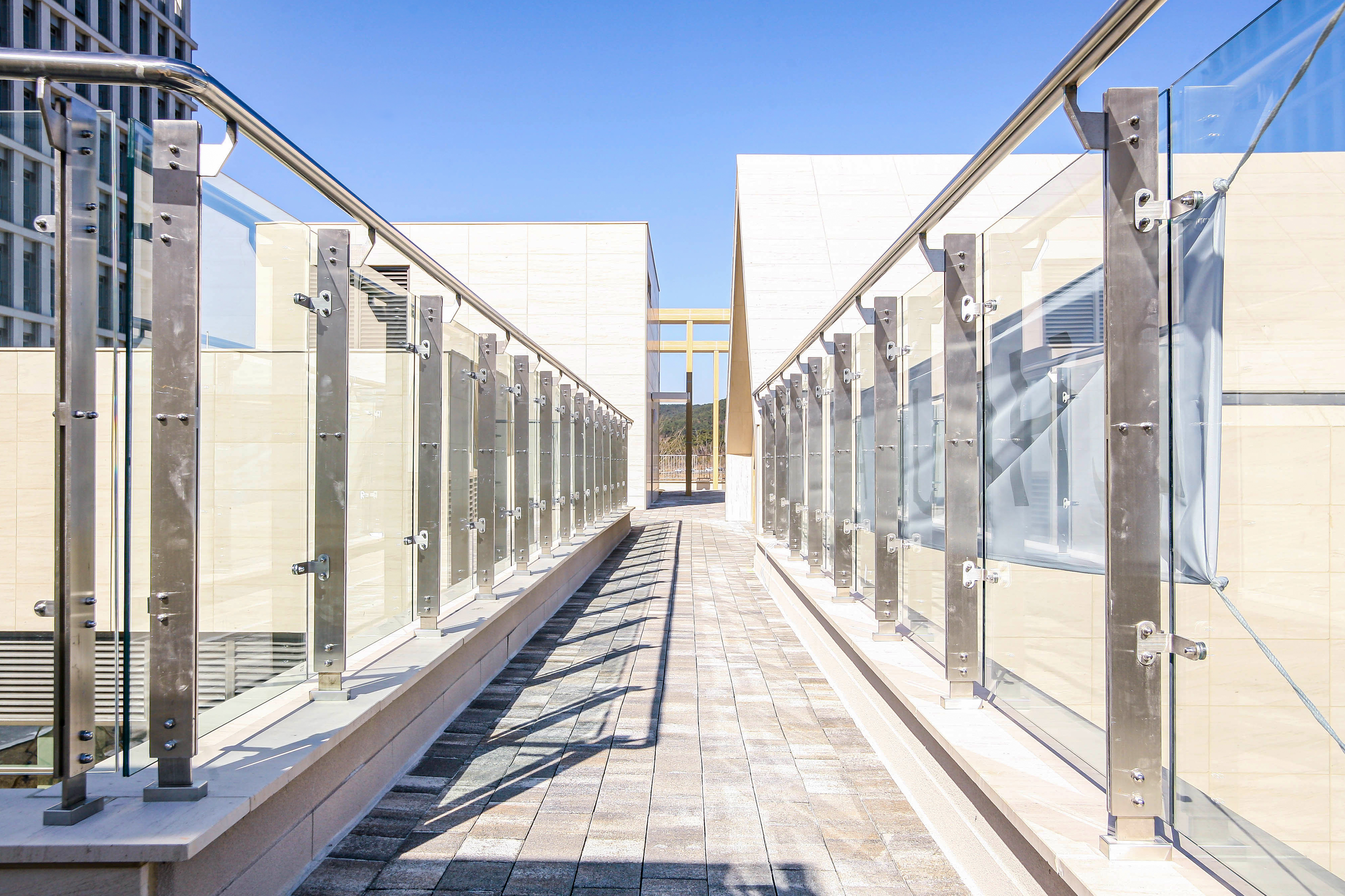 난간몰의 유리 난간은 시야를 가로막지 않아 탁 트인 풍경을 온전히 즐길 수 있게 합니다.